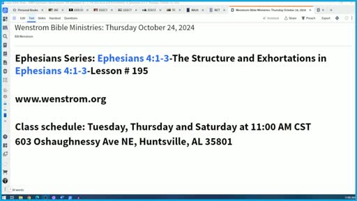 Lesson 195-Ephesians Series Thursday October 24, 2024-Ephesians 4.1-3-The Structure And Exhortations In Ephesians 4.1-3